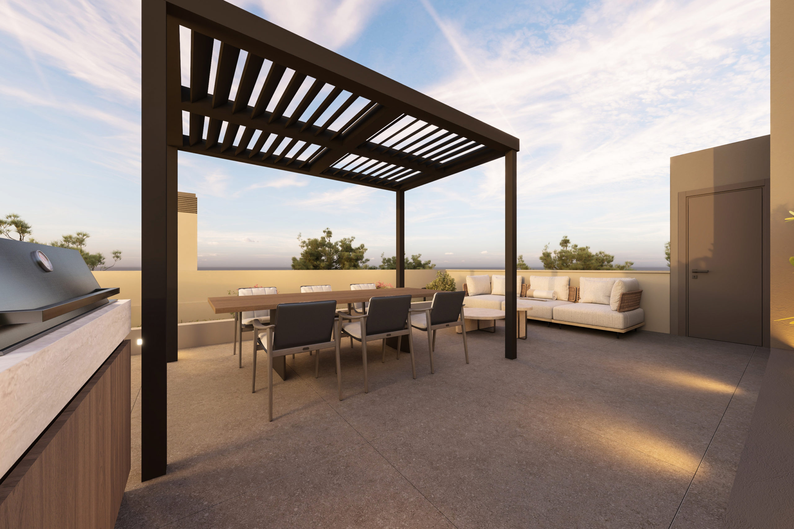 Το κυρίαρχο στοιχείο της κατοικίας είναι το αποκλειστικό roof garden, επιφάνειας 52,9 τετραγωνικών μέτρων, το οποίο διαθέτει ζώνες φύτευσης και χώρους πολλαπλής χρήσης. Η τοποθέτησή του στην κορυφή της κατασκευής, σε συνδυασμό με την ανοιχτή θέα έως τον Πειραιά, δημιουργεί ένα περιβάλλον αληθινά προνομιούχο. Η κατοικία ΙΙΙ προσφέρει μια εμπειρία που υπερβαίνει τα όρια ενός διαμερίσματος – ένα ήσυχο, ευρύχωρο και ανεξάρτητο καταφύγιο μέσα στην πόλη.